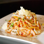 Napoli sauce, Marinated Prawns, Mussels, Smoke Salmon & Garlic, Garnished with Parmesan0